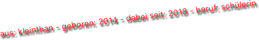aus: kleinthan - geboren: 2014 - dabei seit: 2018 - beruf: schülerin